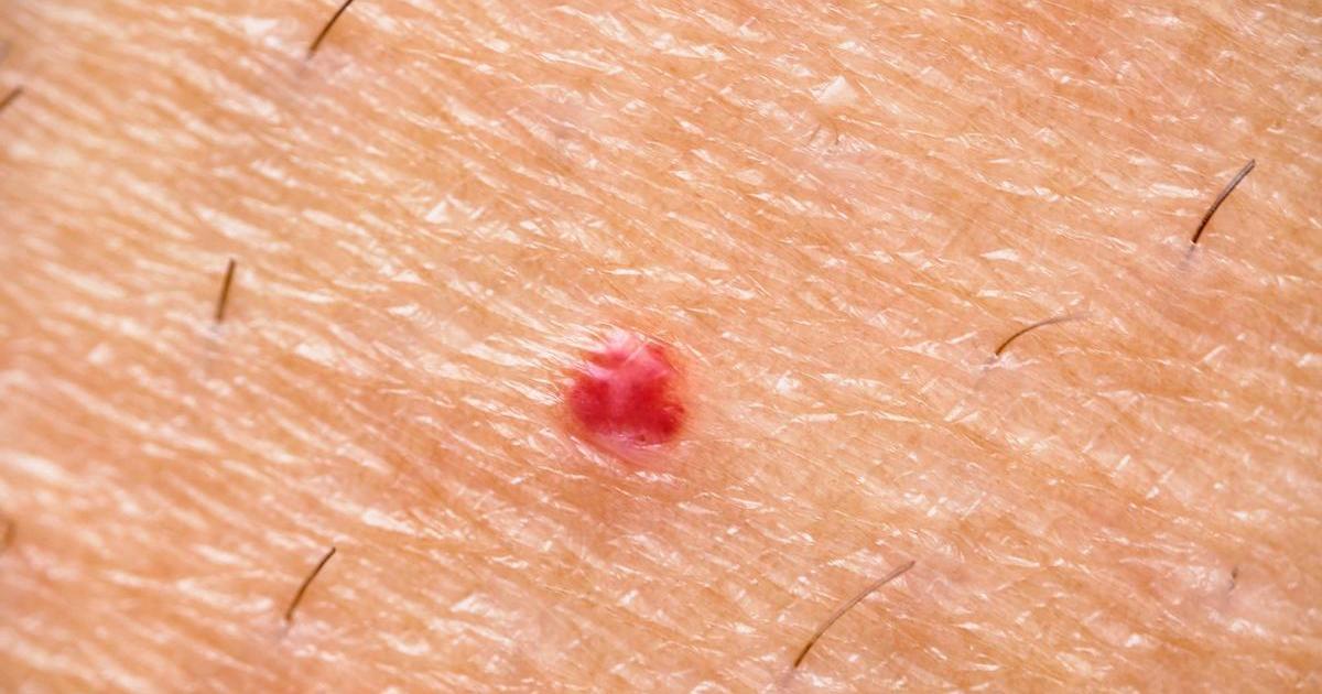 Un punto rubí, también llamado angioma capilar adquirido, en un brazo. Freepik