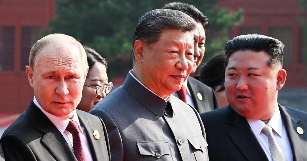 Vladimir Putin junto a Xi Jinping y Kim Jong Un (I-D) durante el desfile militar celebrado este miércoles en Pekín. EP