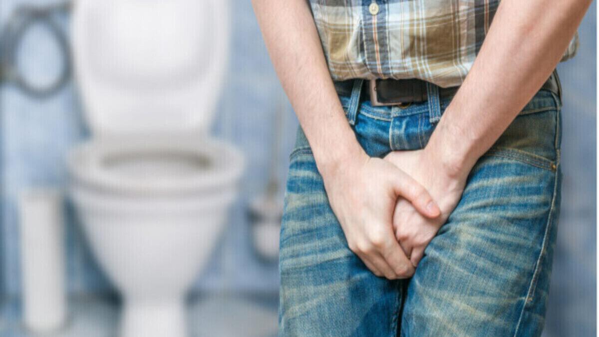 Un hombre con ganas de orinar.