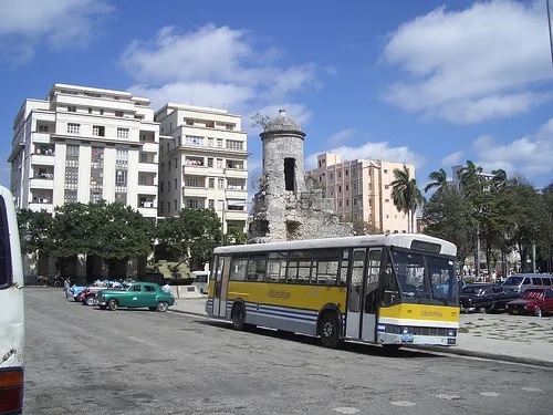 Cuando uno pasea por las viejas calles de La Habana espera encontrarse los enormes y antiguos coches estadounidenses y soviéticos, los entrañables cocotaxis y también algunos vehículos modernos. Lo que sorprende es encontrarse en la capital cubana una villavesa, un autobús urbano de Pamplona, rotulado exactamente como cuando prestaba su servicio por las carreteras navarras.