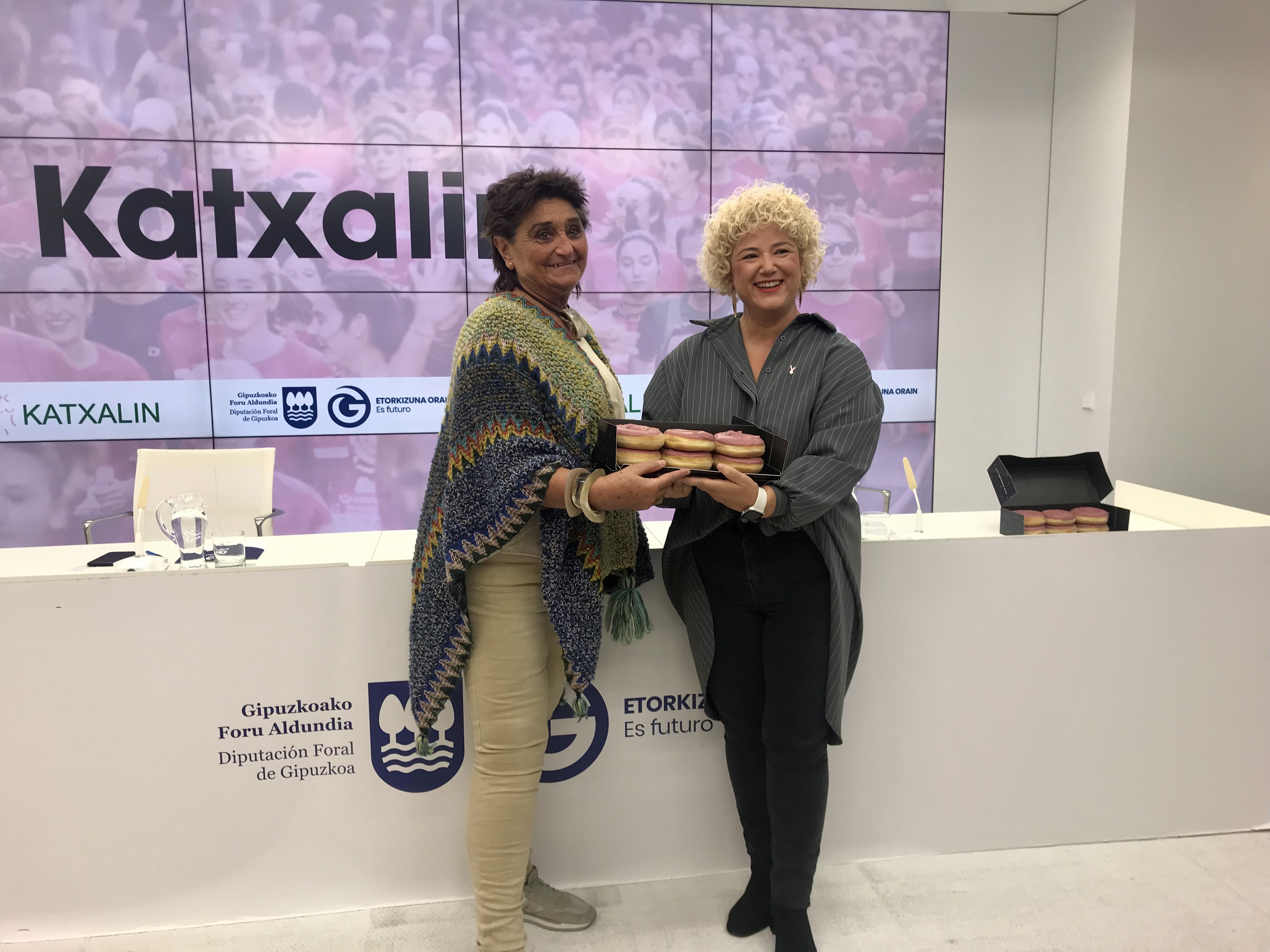 Este mes, el mes de octubre, es el mes rosa, un mes en el que se da visibilidad al cáncer de mama, una enfermedad que afecta a muchas mujeres. Es por ello, que la asociación de Mujeres Afectadas de Cáncer de Mama y Ginecológico de Gipuzkoa, Katxalin, ha preparado un amplio abanico de actividades dentro de la anual campaña de sensibilización, que ha sido presentada hoy por Maite Peña, diputada de Políticas Sociales de la Diputación Foral de Gipuzkoa, y Garbiñe Aramendi, miembro de la junta directiva de Katxalin.
