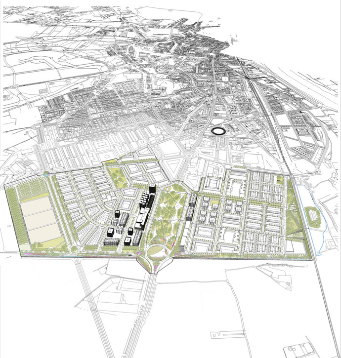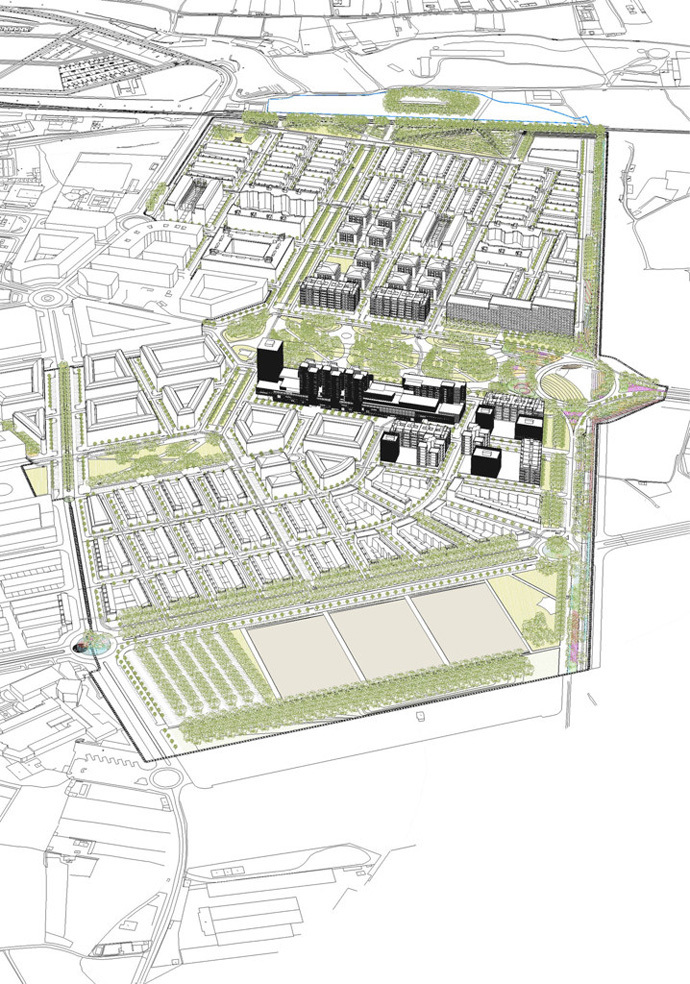 El insigne arquitecto, premio Pritzer, ha destacado el importante papel del parque de 40.000 metros cuadrados y 400 metros de longitud (desde la rotonda siguiente a la plaza de Europa hasta la altura de la vía verde del Tarazonica) en torno al cual se ordenará la entrada a Tudela (tendrá en los márgenes los edificios con más alturas) y se dará un nuevo sentido al final del Barrio de Lourdes. "No es tanto una invención como una ayuda para consolidar una inercia ya establecida por la propia ciudad, incorporando un elemento muy valioso como es un parque urbano que acapara más del 10% de la superficie", ha analizado Moneo.