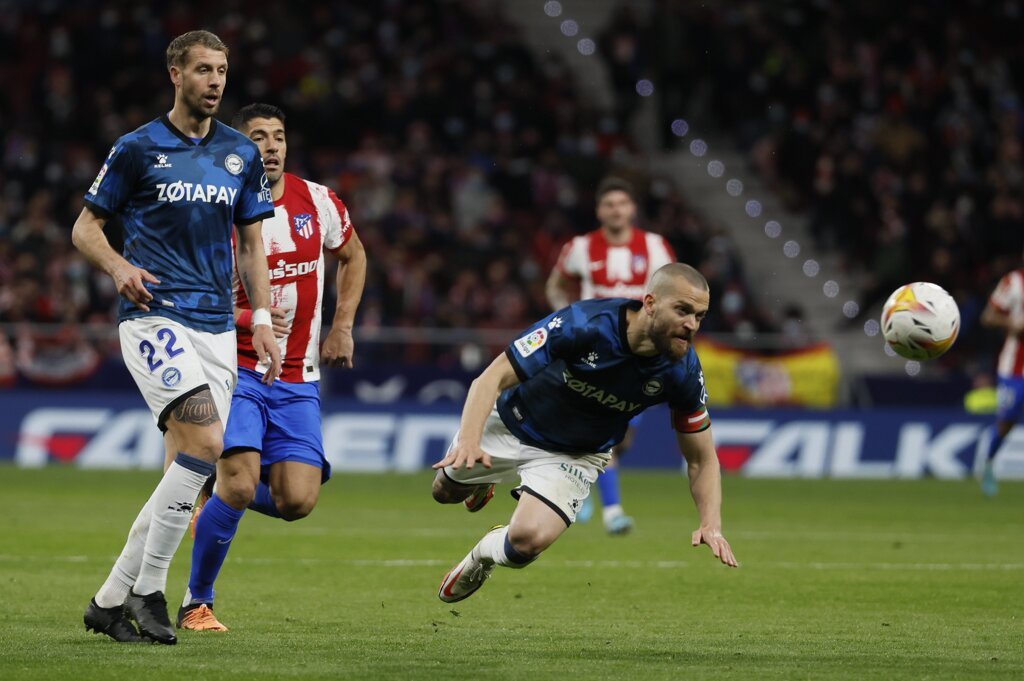 A partir de ese momento, los colchoneros se olvidaron de su versión técnica y autoritaria y, como si de una final de Liga de Campeones se tratase, comenzaron a defender su ventaja mediante continuas interrupciones –permitidas, erróneamente, por el árbitro, demasiado permisivo incluso en un codazo de Vrsaljko a Pina–. Algo que aprovechó el Alavés para tener cierta posesión, pero, como ya es habitual, sin capacidad alguna de generar peligro. Salvo, eso sí, por un error en la salida local que le sirvió a Rioja para servirle un balón raso a Joselu, cuyo remate se encontró con la determinante aparición de Giménez.