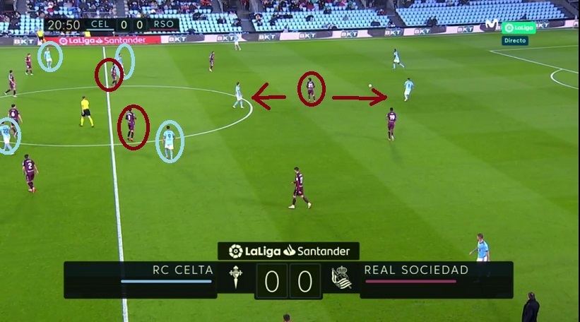 Además, cuando el Celta logró asentarse en campo rival, los txuri-urdin supieron ajustarse. ¿Cómo?
