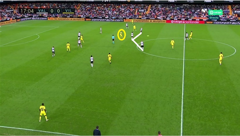 El sueco buscó recibir entre líneas a la espalda, al costado o incluso en medio del doble pivote del Valencia, con Wass- Racic atraídos por las marcas en la medular que veíamos antes.