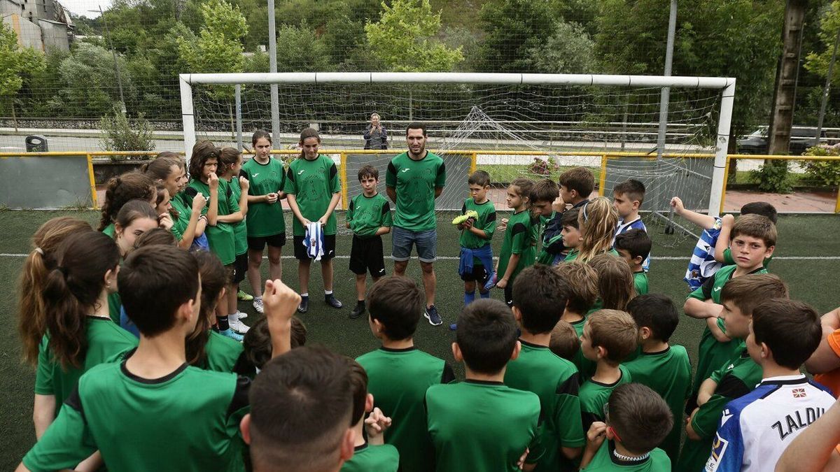 Joseba Zaldua intenta no perder la sonrisa y qué mejor manera de hacerlo que pasando unos minutos con los participantes de la tercera edición del campus que lleva su nombre. El todavía futbolista blanquiazul se ha personado este jueves en Rezola, el campo de fútbol de Añorga, para disfrute de los niños y las niñas que están tomando parte en un campus que termina este viernes. El donostiarra se ha mostrado muy cercano y ha estado repartiendo regalos, ajeno a los rumores que le sitúan fuera de la Real la temporada que viene. De hecho, en Cádiz dan por hecho su fichaje por el equipo gaditano.