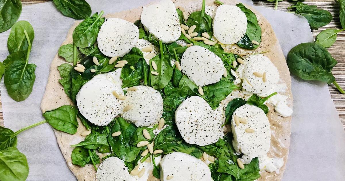 Es ideal para servir templada, y sobre ella una combinación de ingredientes frescos y crujientes: espinacas tiernas, mozzarella en ruedas y piñones naturales que aportan un toque cremoso y crocante al mismo tiempo. El secreto está en el contraste: la calidez de la base con la frescura de los ingredientes, el sabor suave de la mozzarella con el carácter de las hierbas aromáticas, y la ligereza general que convierte esta pizza en una opción perfecta tanto para una cena ligera como para un almuerzo elegante.