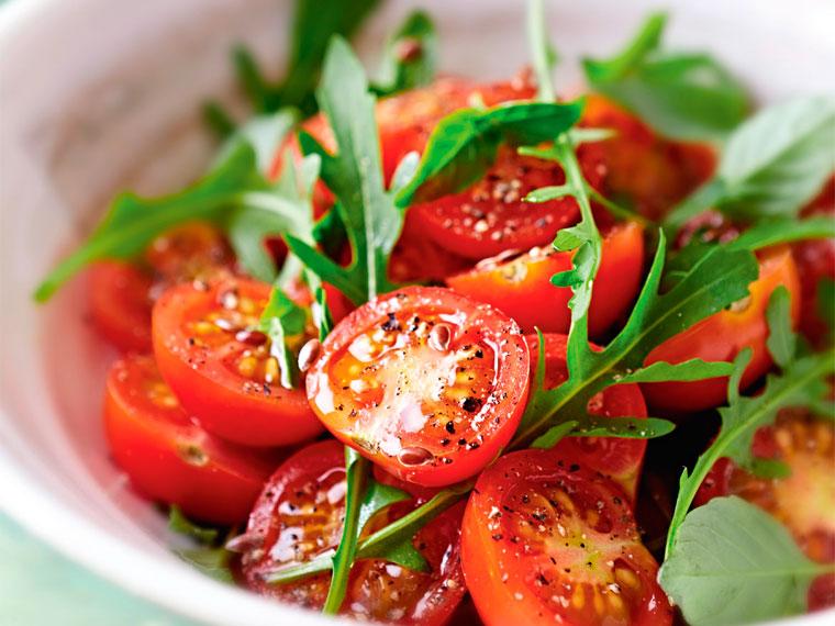 Tomates cherry elaborado de tres maneras diferentes con bonito en escabeche y nueces.