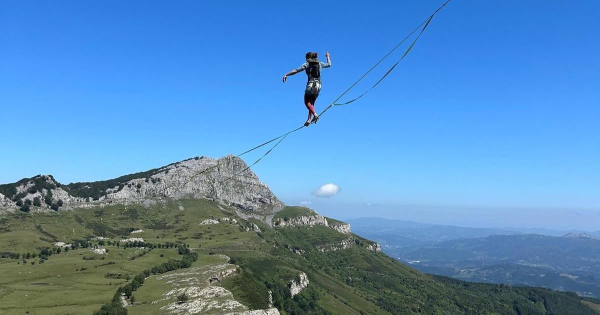 “Cuando se suman energía, pasión y comunidad, ocurren cosas grandes”. Es el mensaje con el que cuatro agrupaciones que promueven e impulsan la práctica de slackline (Oreka Tolosa, Slakherria, Slackline Pays Basque y Slackline Valencia) han confirmado a través de sus redes sociales la consecución de un ambicioso sueño. “Gracias al esfuerzo conjunto de cuatro asociaciones y un puñado de amigos motivados, conseguimos montar dos highlines legendarias en pleno Gorbea: una línea de 1300 metros y otra de 500 metros”.