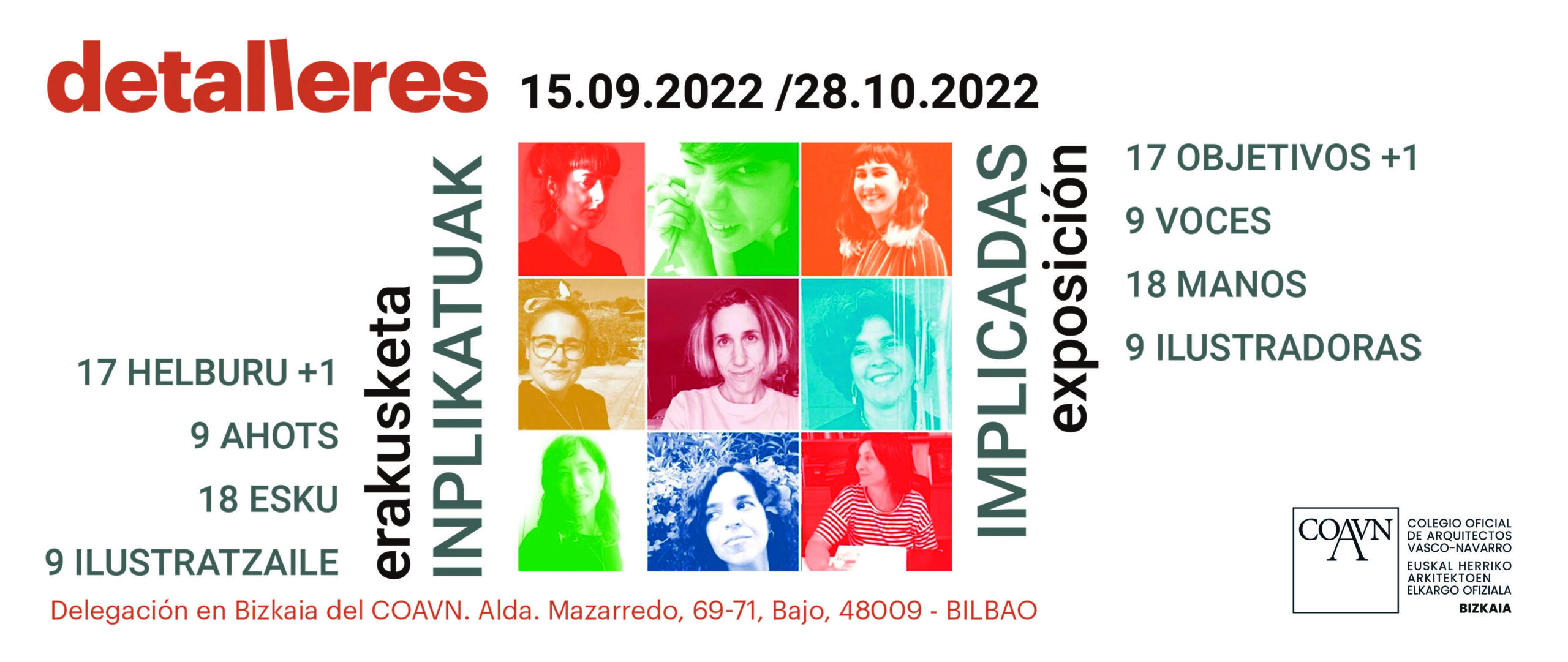 La Delegación en Bizkaia del COAVN Colegio oficial de Arquitectos vasco-navarro acoge desde el jueves 15 de septiembre al 28 de octubre la exposición "Inplikatuak/implicadas". Su comisaria, Elena Rodríguez nos invita a reflexionar sobre los Objetivos de Desarrollo Sostenible junto a 9 ilustradoras vascas.