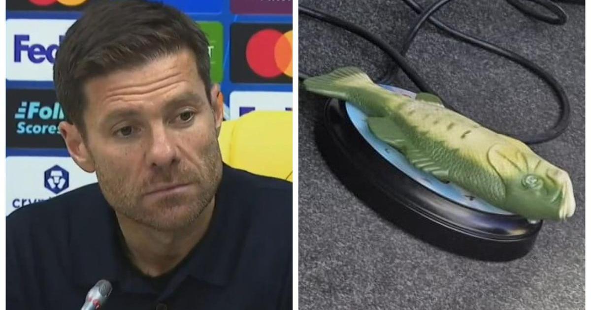 Regalan a Xabi Alonso un pez que habla en la rueda de prensa de la Champions