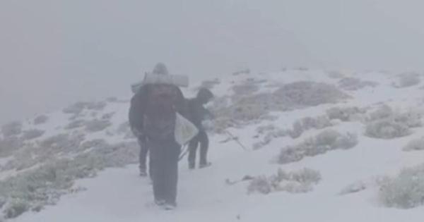 A las 6.15 horas, el equipo inició la aproximación a pie hacia la zona donde se encontraban los montañeros, momento en el que la temperatura era de 1 grado centígrado, con fuertes rachas de viento, ventisca y nieve, generando una sensación térmica de varios grados bajo cero.