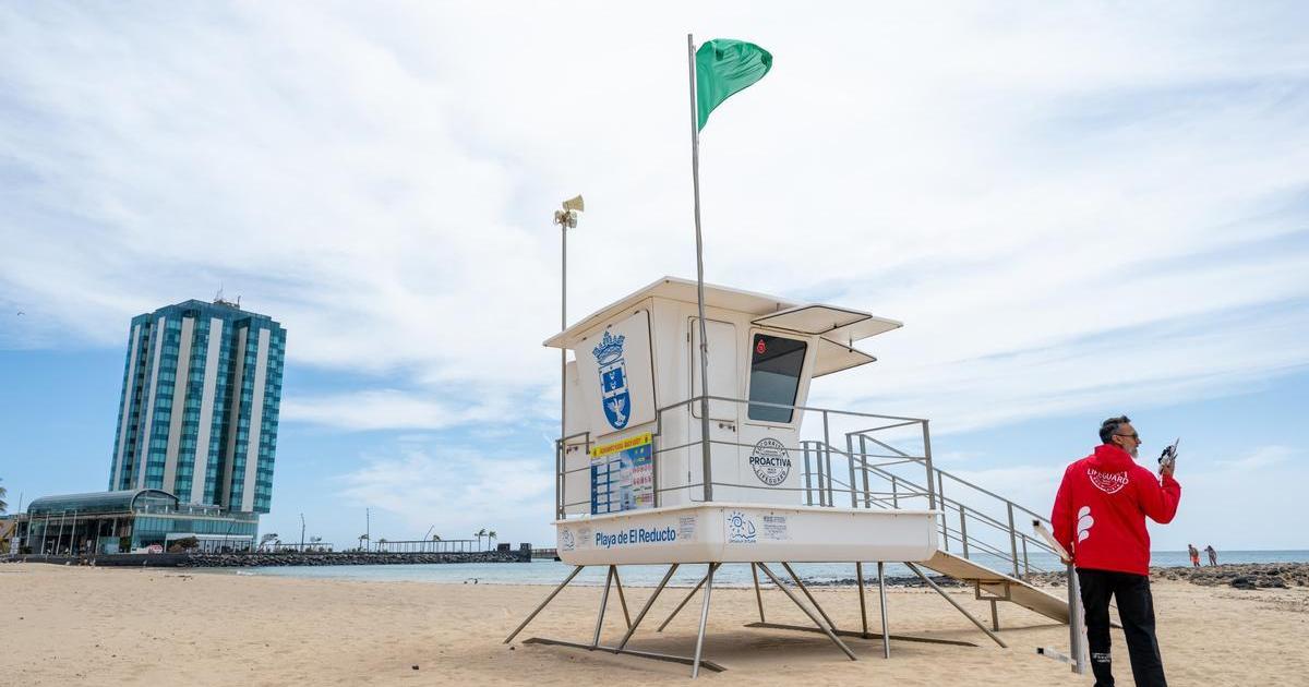 El equipo de socorristas en la Playa de El Reducto, en Arrecife, de Lanzarote, ha rescatado ilesos a una niña de 8 años y un niño de 9 en un bote inflable que fue arrastrado por el viento unos 200 metros mar adentro.