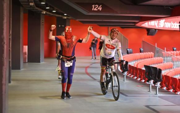 SpiderAbel, el corredor de ultratrail de Amurrio, y el muskiztarra Il Diavolo, ultrafondista de ciclismo, han culminado hoy en el estadio de San Mamés el reto solidario de recorrer, junto a otros atletas y ciudanaos anónimos, 7.500 kilómetros en un mes para recaudar fondos para la investigación de las enfermedades raras.
