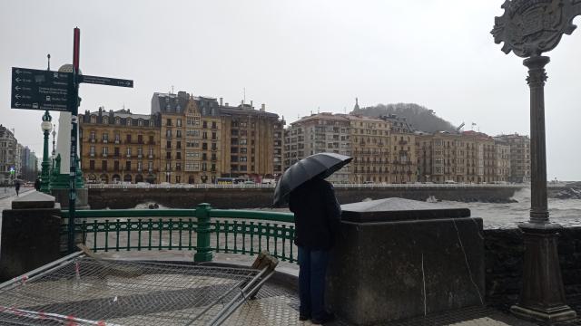 Donostia está viviendo una complicada jornada por las intensas precipitaciones y las fuertes rachas de viento, así como por el riesgo de impacto de ola. De echo, la costa donostiarra se encuentra en alerta naranja por estos motivos.