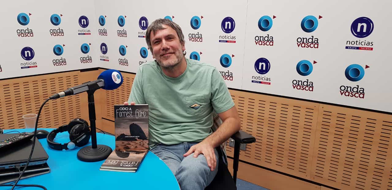 El santurtziarra Ander Serrano, presenta en Onda Vasca su tercera novela sobre un tipo con mala suerte, un gafe, muy pagafantas. Tendremos que descubrir el por qué del título, leyendo "Odio a Forrest Gump"!!.