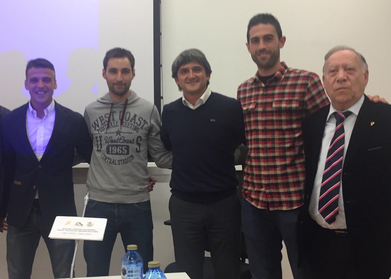 “Veo mucha igualdad”, dice Roberto aunque espera que se imponga el equipo de sus amores en un choque que va a ser dirigido por su paisano Gil Manzano -el de la izquierda en la foto junto a Ricardo de Burgos Bengoetxea, José Manuel Monje, Iñaki Vicandi Garrido e Ilbon Urízar Azpitarte-, del que entiende que “ha bajado mucho. El último año de los árbitros en Primera es muy complicado porque están buscando la placa de reconocimiento. No deberían estar", añade, "porque quieren quedar bien, el tema arbitral no está solucionado y el VAR no sirve para nada, además del daño que están haciendo al arbitraje los excolegiados, que encima se han convertido en estrellas mediáticas y nadie se pone de acuerdo”.