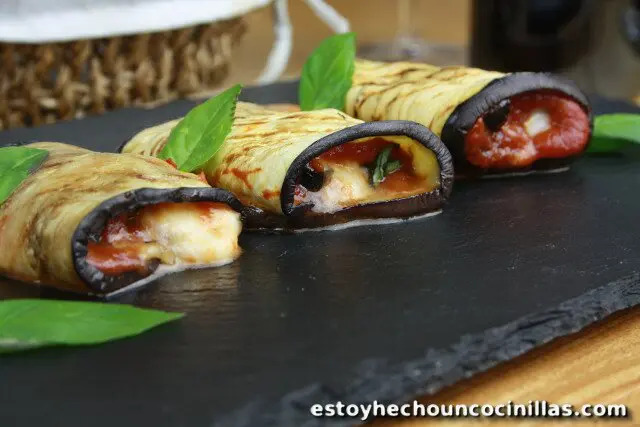 Hoy vamos con una receta italiana. Preparar estos rollitos de berenjena, tomate, mozzarella y aceitunas no conlleva ninguna dificultad y sobra decir que están buenísmos. La berenjena la vamos a cortar en láminas a lo largo y la vamos a hacer a la plancha o al horno, como gustes.