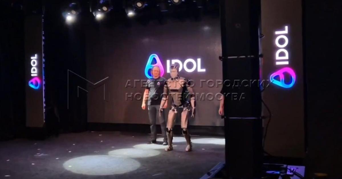 Con la música de la película Rocky de fondo apareció el robot humanoide, llamado Aidol, en el escenario caminando de pie. Eso sí, pese a lo rápido que movía las piernas avanzaba muy poco, seguido por detrás por dos personas reales vigilando sus pasos, quizá porque no se fiaban del todo de lo que pudiera hacer.