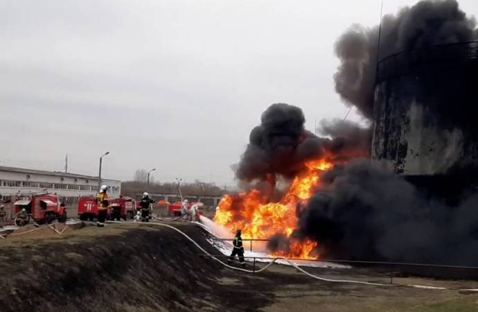 El incendio provocado tras el ataque al depósito de combustible. Agencias "El depósito no tiene nada que ver con las Fuerzas Armadas de Rusia. Como resultado del ataque algunos depósitos resultaron dañados y se incendiaron", explicó Ígor Konashénkov, portavoz castrense.
