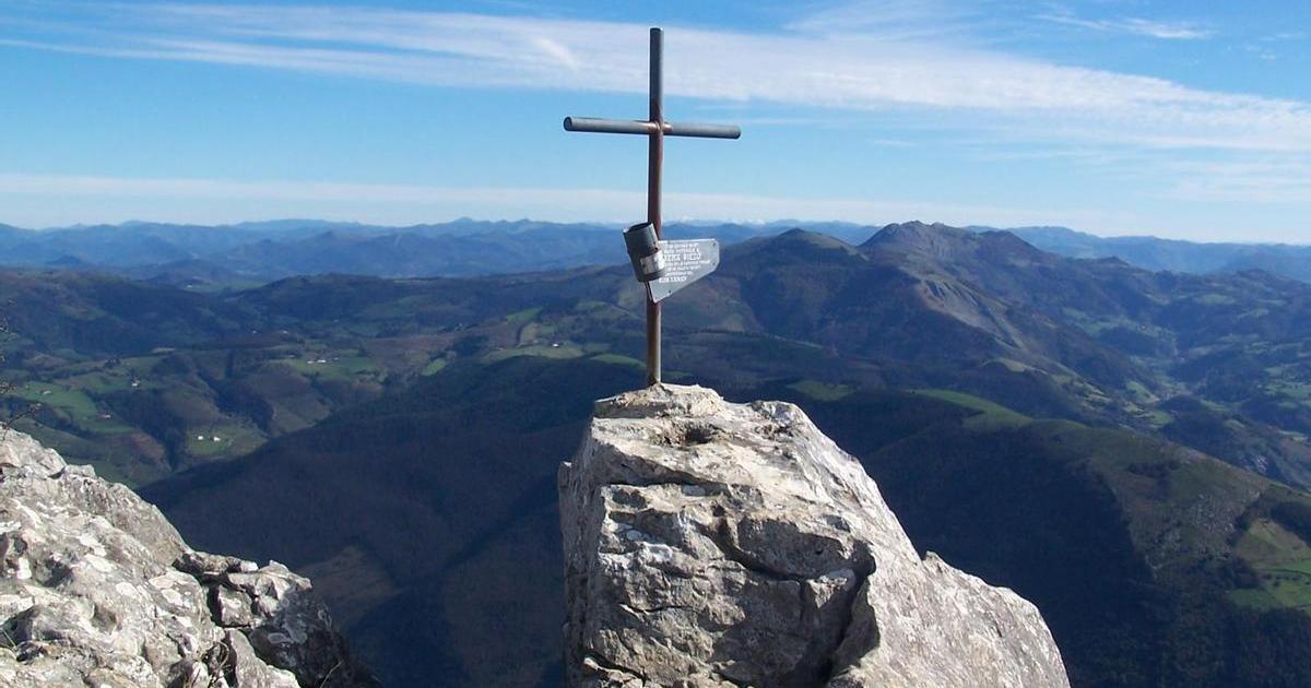 La cima oficial del Erlo (1.030 m) se encuentra unos metros más atrás, accesible por una pista amplia. Es la cumbre más elevada del macizo y un auténtico púlpito calizo sobre el valle de Iraurgi. Desde ella se comprenden mejor las dimensiones de este territorio: al este, el Urola; al oeste, el Deba; al norte, el mar; al sur, las suaves colinas que conducen hacia el interior.