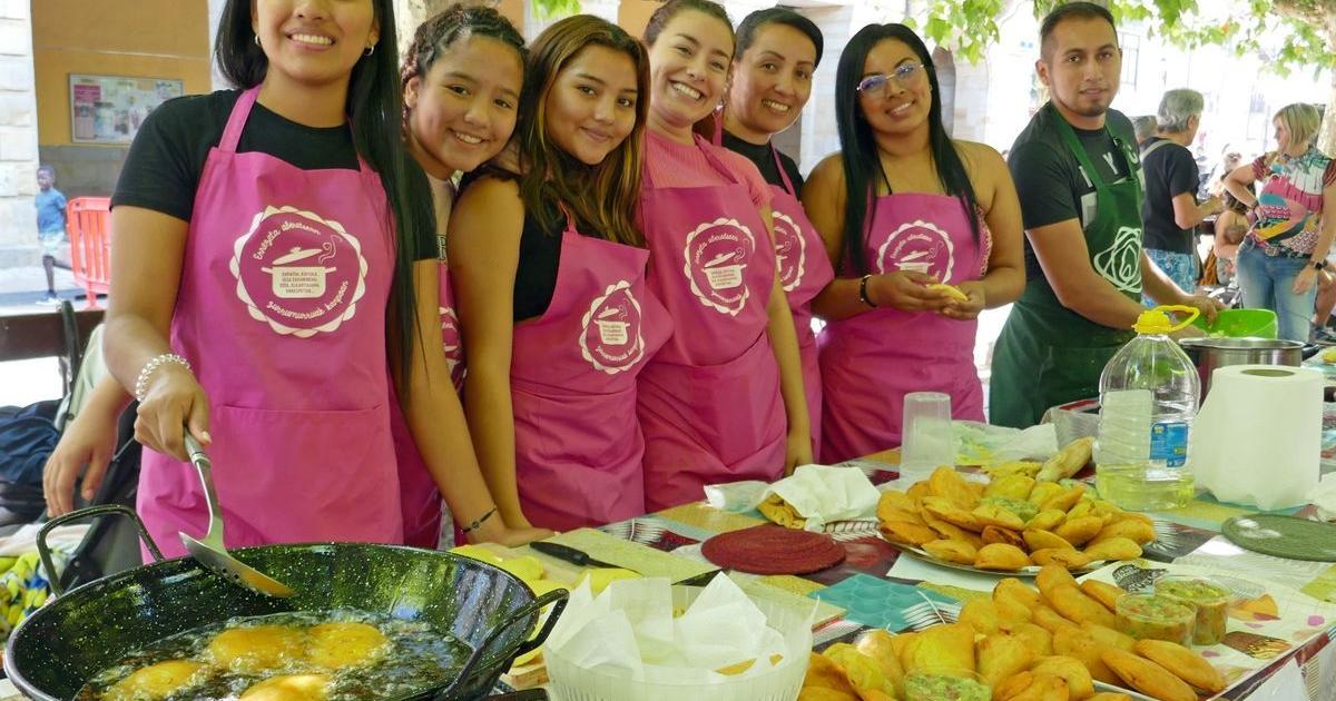 Fue una manera diferente de pasar la mañana que gustó, con movimiento en la plaza desde las 10.00 horas, cuando se pusieron en la tarea para que se pudieran degustar sus platos hacia las 13.30 horas. Se repartieron más de 300 recipientes para ir probando en las mesas. Así, un grupo de Colombia que vive en Altsasu preparó empanadillas de carne desmechada y patatas, que se podía acompañar de guacamole y ají, una salsa picante que se utiliza para acompañar todo tipo de alimentos. Mientras, un grupo de ucranianos del albergue Santo Cristo de Otadia, preparó borsch, una sabrosa sopa con remolacha, pimientos verdes, tomate, carne, patatas que se sirvió con crema agria. Alfonso Apolo, que lleva 22 años viviendo en Etxarri Aranatz, cocinó para sus vecinos carne de cerdo con patacones de plátano y cuya cocida. “En Etxarri se vive muy bien, tranquilo”, aseguró.