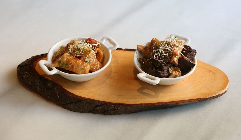"Dentro de que es una cocina bastante tradicional, a la hora de emplatar y cocinar ellos tienen unas ideas maravillosas que yo les compro porque en cuatro días nos hemos convertido en una mini familia", dice Txus en referencia a Saliha, Aurora y Jesé, el equipo que le acompaña en la cocina. La idea es especializarse en tapas y raciones para compartir.