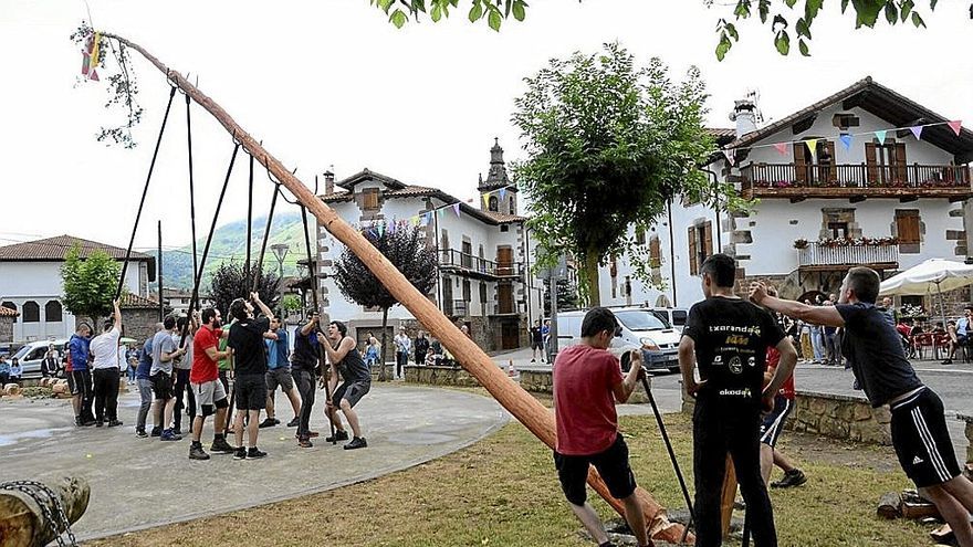 Ondotik plazan bandera dantzatu zuten eta gero, aspaldiko ohiturari jarraiki, indarrez eta trebeziaz jantziriko herritarrek 19 metroko bat hartu eta plaza bazterrean zutik jarri zuten, bestak piztu direnaren seinale. Igande arratsera arte egonen da zutik. Arratsean, Baztan Zopak dastatu zituzten.