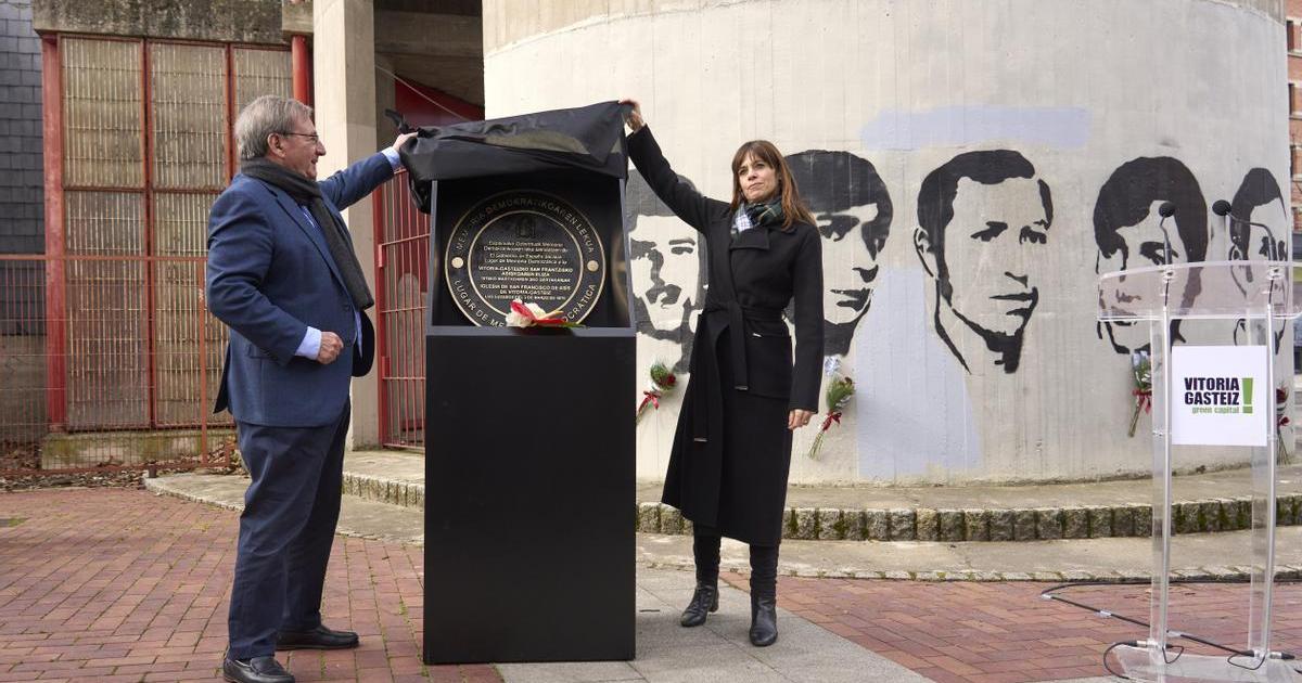 Fernando Martínez acudió a Gasteiz para descubrir la placa que otorga la categoría de lugar de la memoria a la iglesia de San Francisco de Asís, donde se celebró la asamblea de trabajadores brutalmente reprimida a tiros. Arrebataron la vida a Pedro Martínez, Francisco Aznar, Romualdo Barroso, José Castillo y Bienvenido Pereda. Franco había muerto ya, y el Gobierno lo presidía Arias Navarro. Manuel Fraga (a la postre, fundador de Alianza Popular y más tarde líder del PP) era el ministro de Gobernación, pero se encontraba de viaje en Alemania. Su puesto lo cubría entonces Adolfo Suárez, quien se convertiría poco después en el primer presidente español electo tras la dictadura. En el acto de la placa participaron la consejera socialista de Justicia y Derechos Humanos, María Jesús San José; la alcaldesa también socialista de Gasteiz, Maider Etxebarria; el diputado general de Araba, el jeltzale Ramiro González, y el obispo de Gasteiz, Juan Carlos Elizalde.