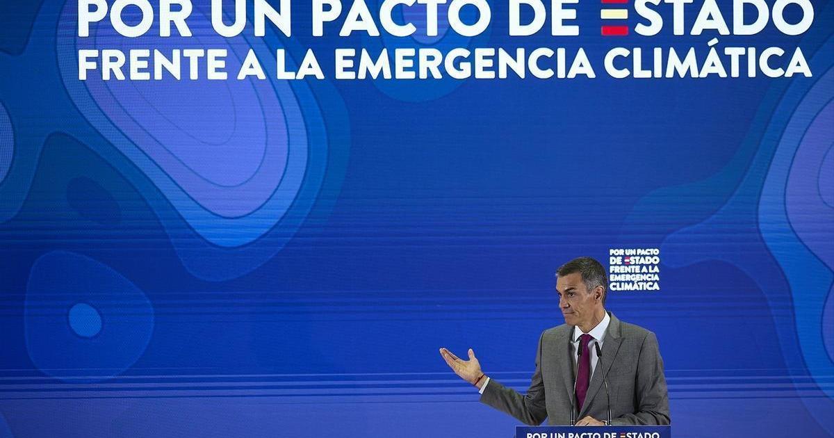 El presidente del Gobierno español, Pedro Sánchez, durante el acto 'Por un pacto de Estado frente a la emergencia climática'. / EP