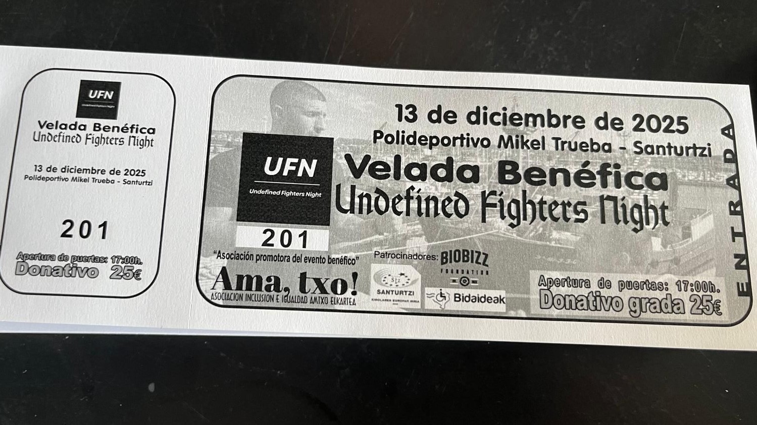 Además de su carácter reivindicativo, la Undefined Fighters Night tiene un fondo solidario. Los beneficios recaudados se destinarán a Aspanovas, asociación vizcaína que apoya a niños y niñas con cáncer, y a la propia Ama, Txo!, con el objetivo de continuar impulsando proyectos que garanticen un deporte accesible y sin barreras.