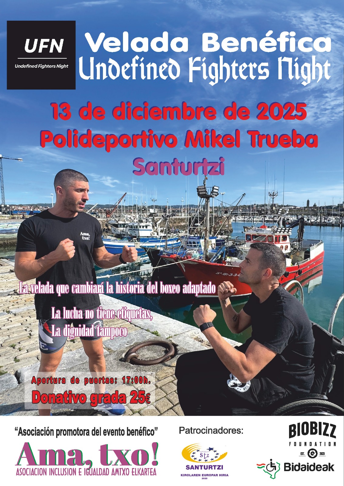 El próximo 13 de diciembre, el Polideportivo Mikel Trueba de Santurtzi se convertirá en el epicentro de una cita deportiva sin precedentes en Europa: la Undefined Fighters Night, una velada benéfica e inclusiva que reunirá sobre un mismo ring a luchadores con y sin discapacidad.
