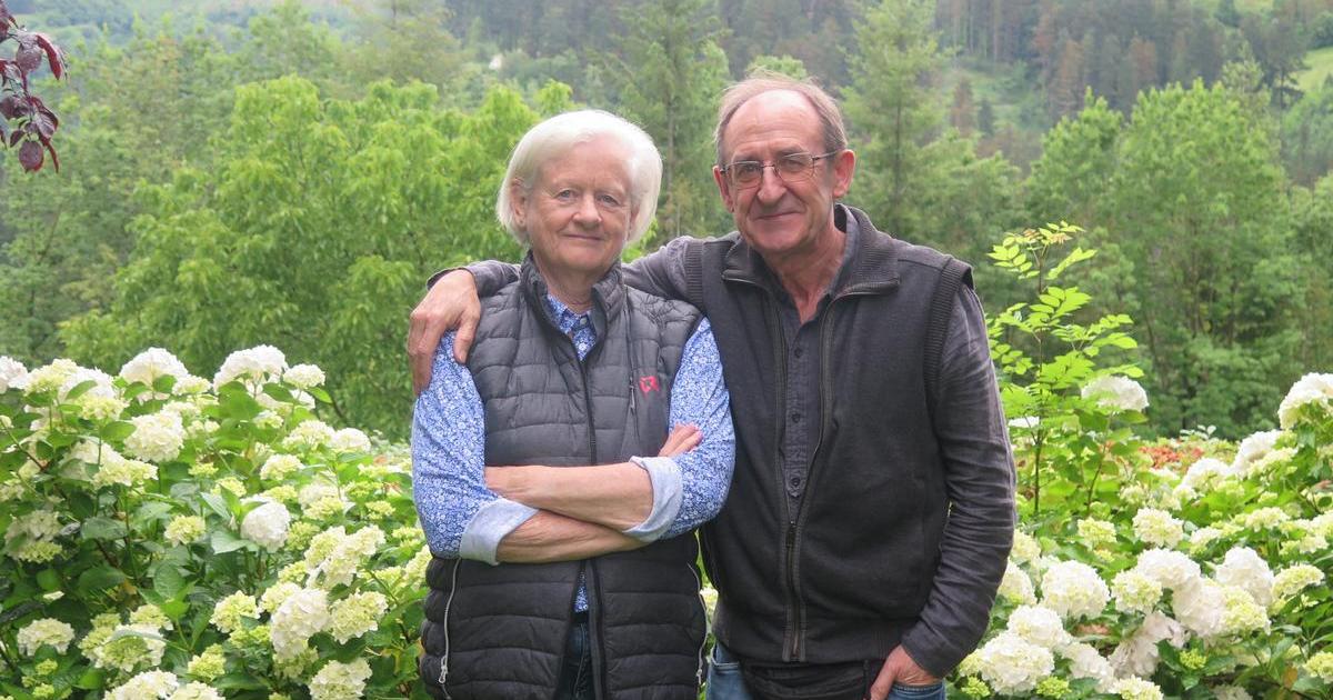 Sarah Turtle eta Iñaki Mendiguren, beraien etxeko lorategian.