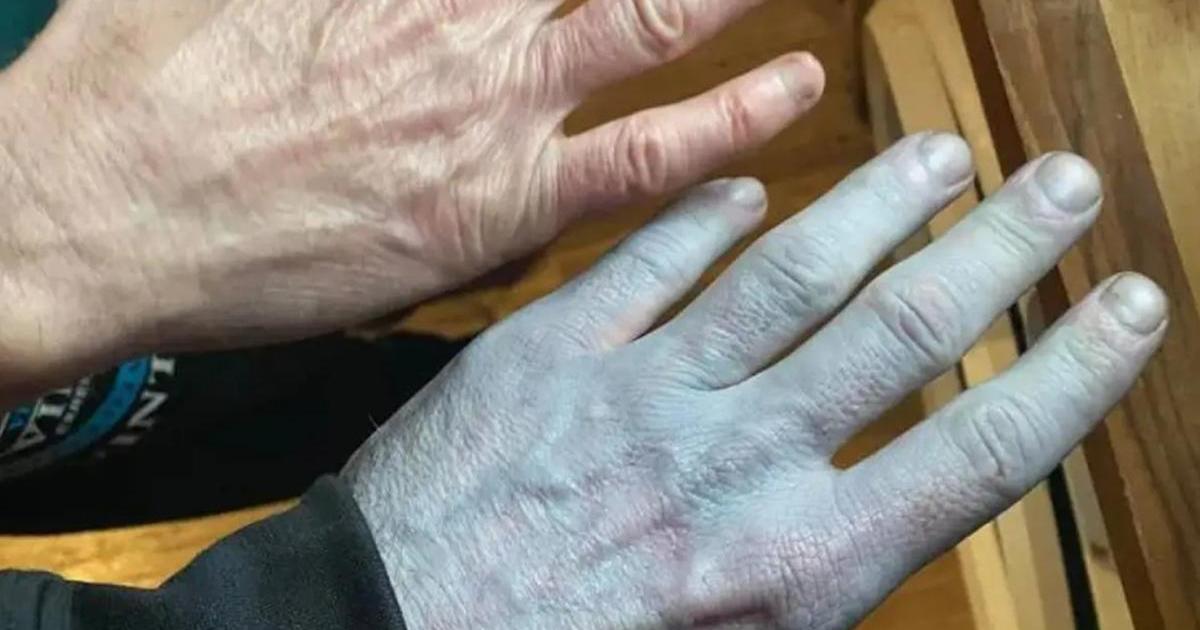 Envió la foto de su piel azul a su madre y ella todavía lo inquietó más, especulando con que podía sufrir un fallo circulatorio. Algo que confirmó su amigo, que le indicó que esa extraña coloración podía deberse a un problema de oxigenación en la sangre. Cuando se pasó jabón por la piel y vio que no se iba el azul ambos pusieron rumbo a urgencias.
