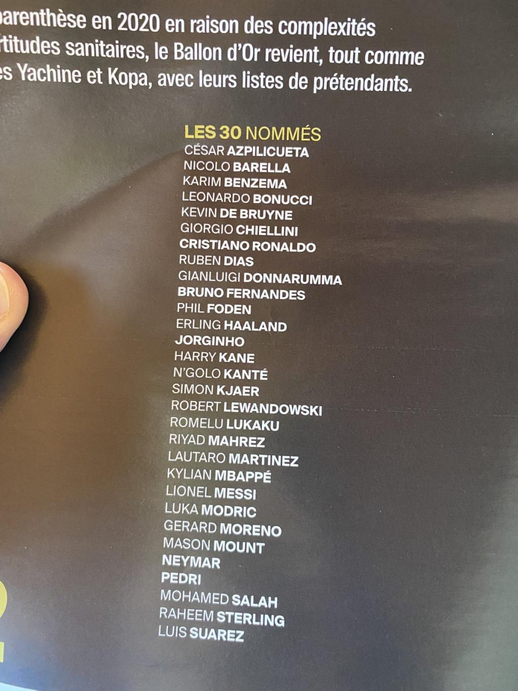 Lista filtrada de los 30 candidatos al Balón de Oro.