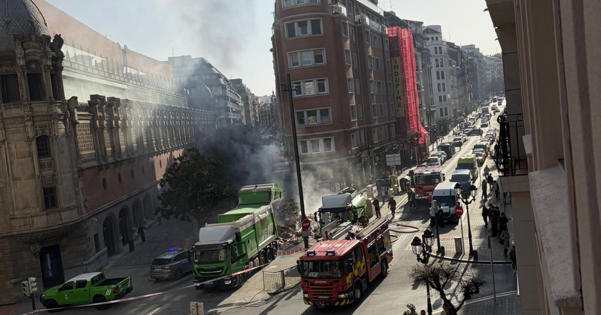 Al ver el humo, el conductor ha vaciado el contenido en la zona peatonal que rodea el Azkuna Zentroa, donde ha seguido ardiendo y generando una notable humareda. Otro camión de limpieza ha sido el primero en intervenir echando agua para que las llamas no fueran a más. Poco después han llegado los bomberos.