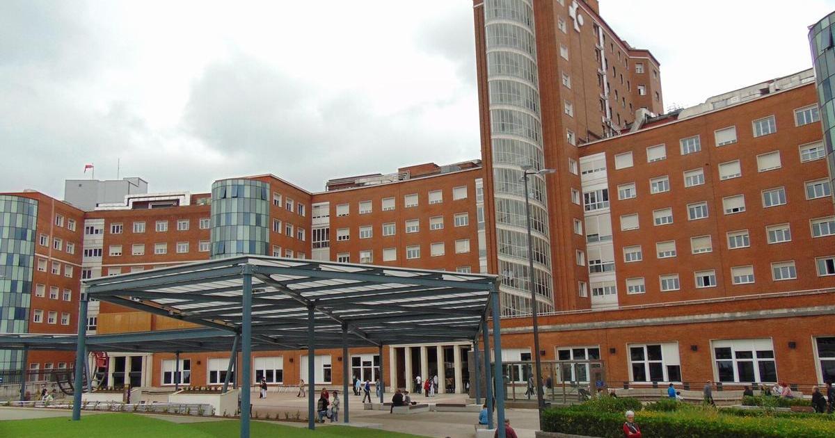 Una persona con mascarilla sale del Hospital de Txagorritxu.