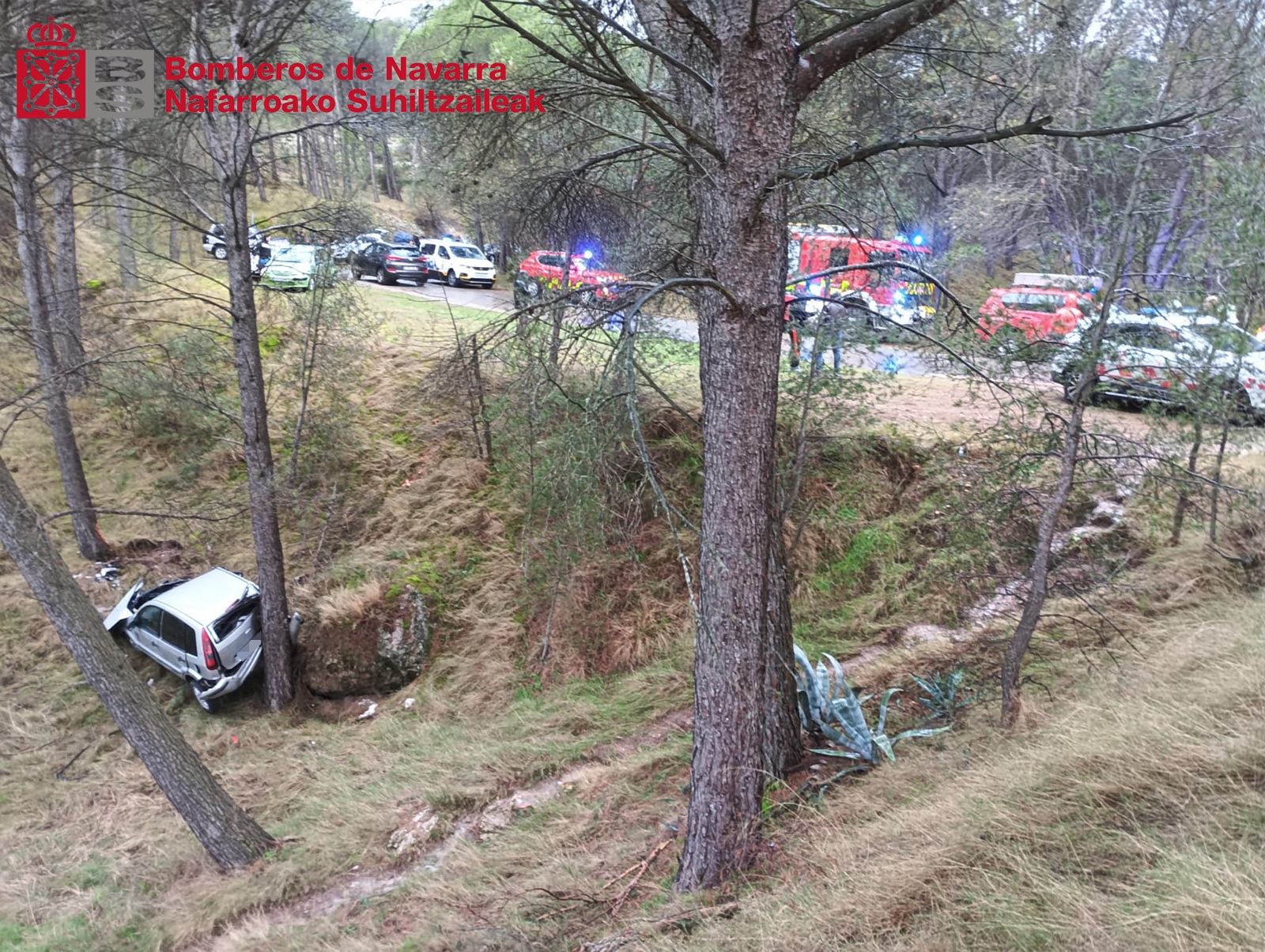 Un grave siniestro vial ha sacudido la localidad de Falces la tarde de este lunes, dejando un balance de seis personas heridas de diversa consideración tras salirse de la vía el vehículo en el que viajaban. El accidente se ha producido en un camino asfaltado que sirve de acceso a la Basílica del Salvador, donde el coche se ha precipitado aproximadamente cinco metros por un terraplén.