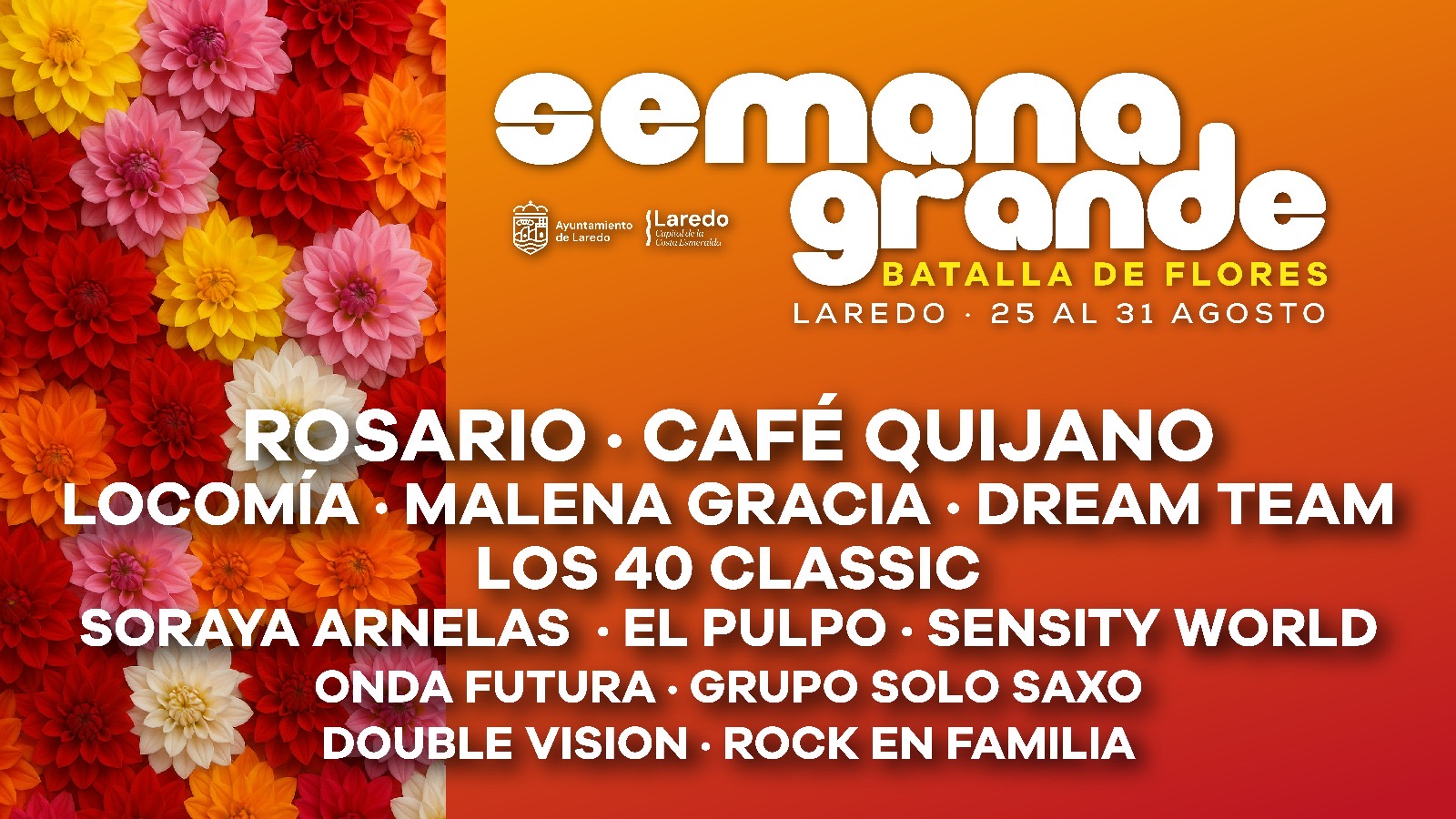 Laredo celebrará del 25 de julio al 31 de agosto su Semana Grande cuya programación encabezan artistas como Rosario Flores, Café Quijano, Locomia, Malena Gracia o Soraya Arnelas, entre otros, y que tiene como acto principal la Batalla de Flores, declarada Fiesta de Interés Turístico Nacional, y que se celebrará el viernes 29 de agosto.