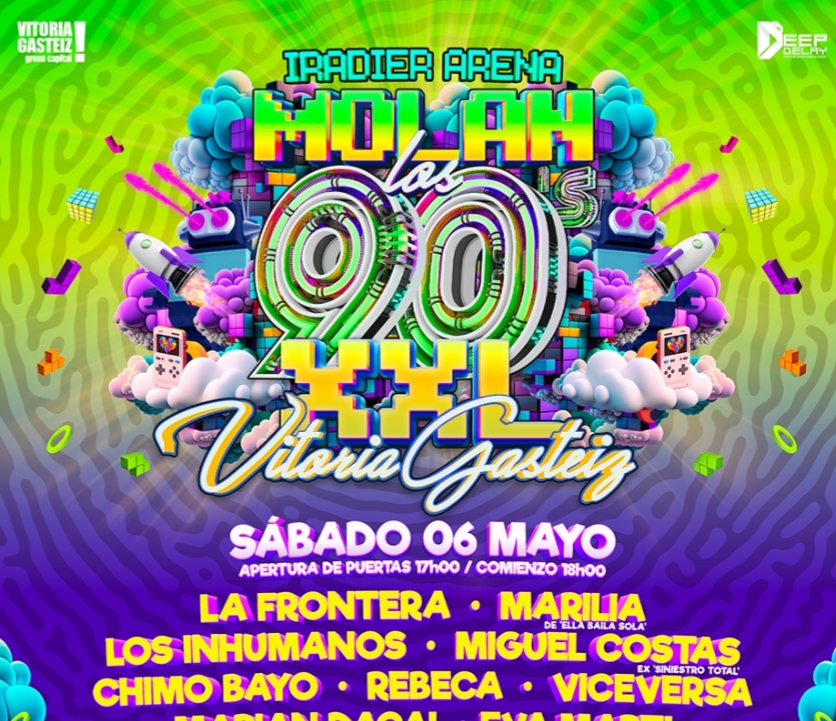 Sergio Aguado, cantante de Los Inhumanos y Chimo Bayo explican todos los detalles del concierto Molan los 90 en Onda Vasca. Este sábado 6 de mayo en el Iradier Arena de Vitoria-Gasteiz, un evento único en el que además estarán: La Frontera, Marilia, Miguel Costas de Siniestro total, Rebeca, Viceversa y Locomia.