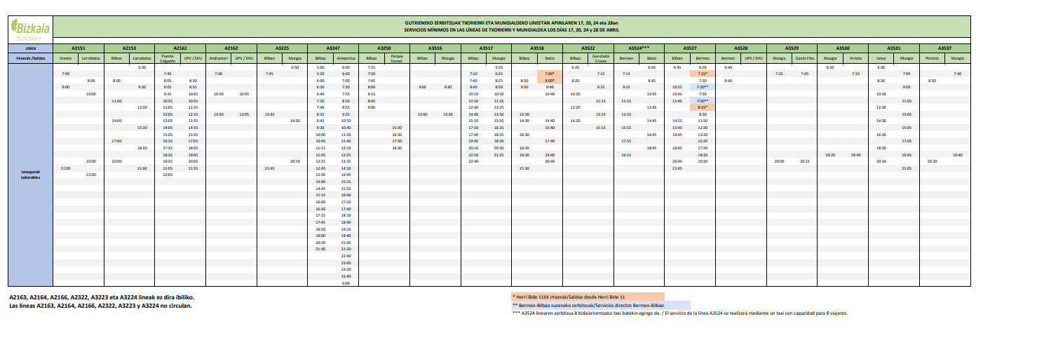 Para quien tenga que coger el autobús en Txorierri - Mungialdea, estos son los servicios mínimos: