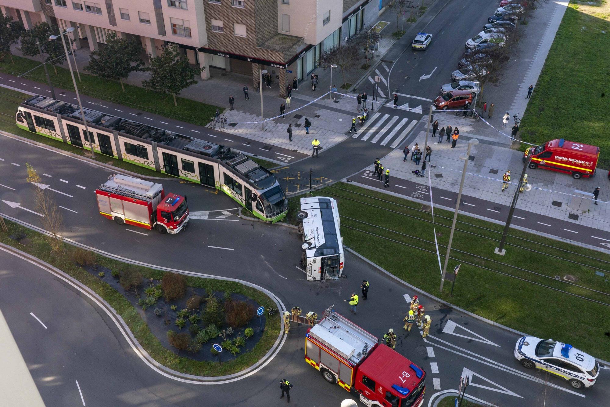 Por causas que todavía se desconocen, a las 14.15 horas el tranvía a su paso por el barrio de Salburua arrolló a un minibús lo que provocó el descarrilamiento del primero y que el segundo volcara.