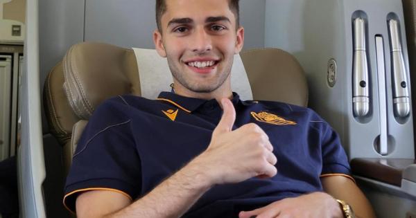 Arsen Zakharyan, este domingo en el avión, rumbo a Japón. / REAL SOCIEDAD