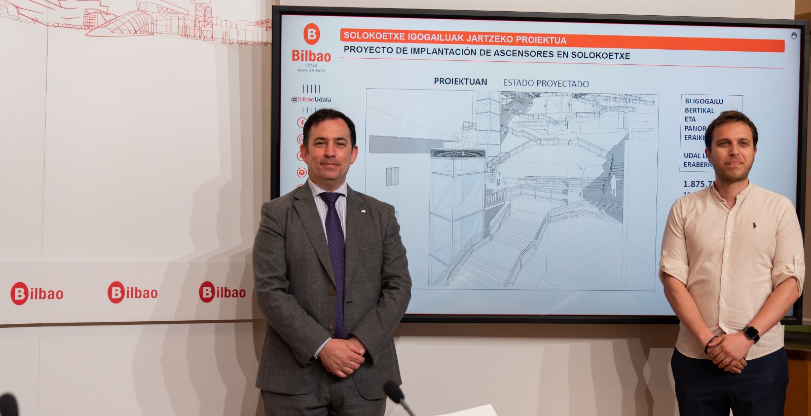 El Ayuntamiento de Bilbao instalará dos ascensores nuevos que conectarán los barrios de Solokoetxe y Casco Viejo. Con la construcción de estos dos elevadores se facilitará una conexión peatonal totalmente accesible entre ambos barrios, en concreto desde la calle Ronda, en el entorno del número 32, hasta el instituto de Solokoetxe. Nos lo han contado el concejal de Obras, Planificación Urbana…