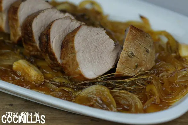 Hoy traemos un solomillo al tomillo al horno con sirope de arce que es de esos platos que parecen muy currados y, en realidad, casi se hacen solos. Lleva cebolla, ajo, laurel y un buen chorro de sirope de arce, que se mezclan con el jugo de la carne y se convierten en una salsita para mojar pan sin parar.