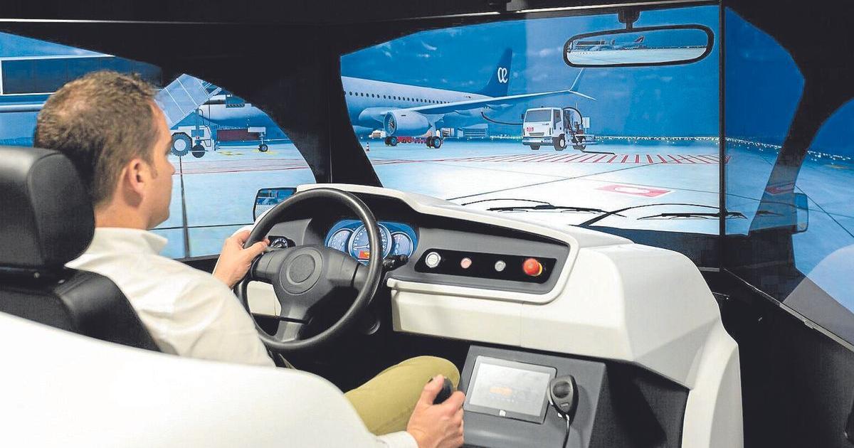 Uno de los simuladores desarrollados por Lander Simulation para Aena, con el objetivo de formar a conductores para vehículos terrestres que operen en entornos aeroportuarios.