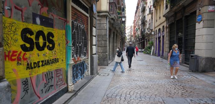 Vecinos, comerciantes y hosteleros de la calle Somera de Bilbao protagonizan una marcha para pedir más seguridad en un barrio azotado en los últimos años por la delincuencia y los continuos incidentes que generan un clima de inseguridad y miedo