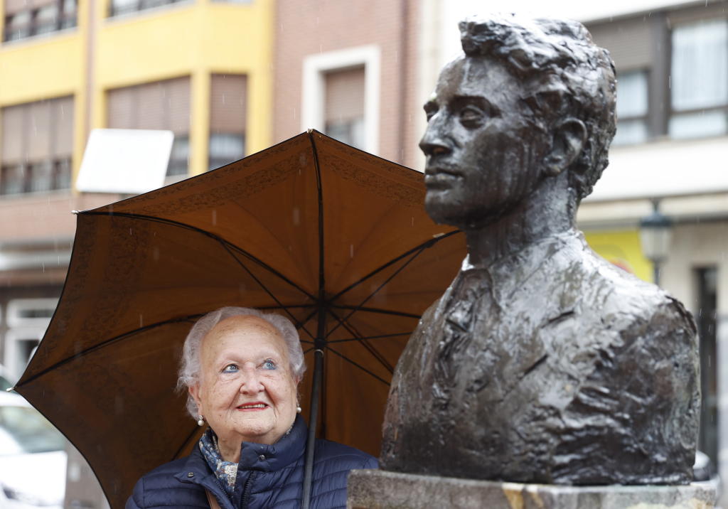 Crucita Etxabe ante la escultura del corresponsal de guerra el inglés George L. Steer en Gernika. Foto: EFE A punto de cumplir 92 años el próximo uno de mayo, mantiene vivos en la memoria el día del bombardeo y sus vivencias posteriores como refugiada en Francia: "No me acuerdo con quién hice la primera comunión, pero del bombardeo me acuerdo. Fue durísimo", asegura.