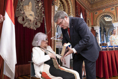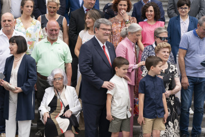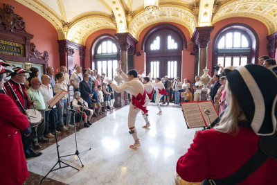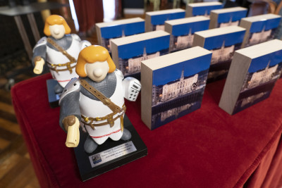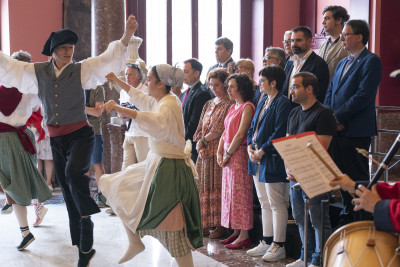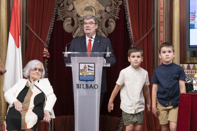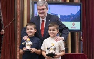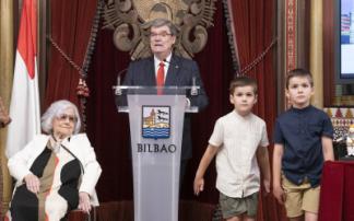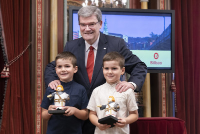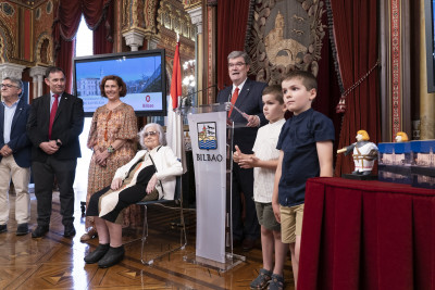 Todos ellos han sido los protagonistas de la Recepción oficial presidida por el Alcalde y miembros de la corporación municipal en esta celebración del 725 cumpleaños de Bilbao, donde han recibido como obsequio una figura de Don Diego López de Haro, fundador de la Villa.