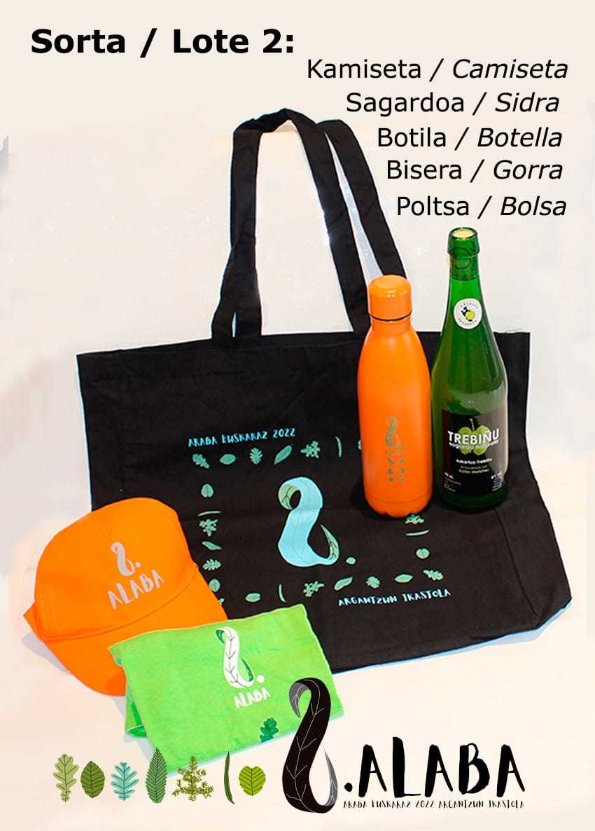 Una gorra y camiseta vienen acompañadas de una bolsa con la que guardar una botella a modo de termo y otra con sidra para disfrutar en un rato libre.